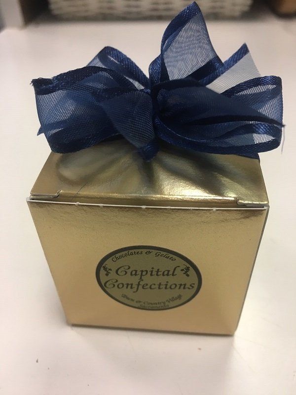 Button4 small truffles or assorted chocolates fill this box beautifully. Box cut to your color and design specifications. Personalized tags also available. Please call for details.